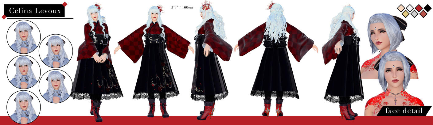 Born to a Doman mother and a Garlean father, Celina Levoux was considered incredibly unlucky. She was born sickly, with an incurable illness that would come close to taking her life many times in her youth. Along with her frail and weak constitution and body, Celina had the world against her, at least, the world of Garlemald. As a half-Garlean, she was ridiculed and spat upon, alongside her Doman mother, for being outsiders to the land. Her only times of respite and clarity were the summers in Doma she spent with her mother, permitted only to travel there due to her father's influence within the Empire.Life would be difficult for the young girl, but she would persevere. Blessed with a bright mind, Celina excelled in academics, and when she grew old enough, attended the Royal Magitek Academy, where she studied alchemical and biomedical studies, the same as her father. By the time she turned 13, her third-eye appeared, a rare occurrence for half-Garleans but not unheard of. This would cause strife upon her trips to Doma, the people seeing her as a curse. The Garleans would still not take kindly to her despite her third-eye, saying it was wasted on someone like her.Her father, Pietro, focused on research concerning aether and was devote in finding a way for Garleans to be able to manipulate it. Celina, also curious in this endeavor, willingly subjected herself to her father's experimental drug trials. For years, she aided him in the lab, but during her 17th summer, a tragedy occurred. A drug that showed promise ended up causing Celina to be declared dead for at least four minutes. The only thing that kept her alive was the fragmented soul of her ancient, Nike, who brought her to life, albeit, in an aetherical coma.