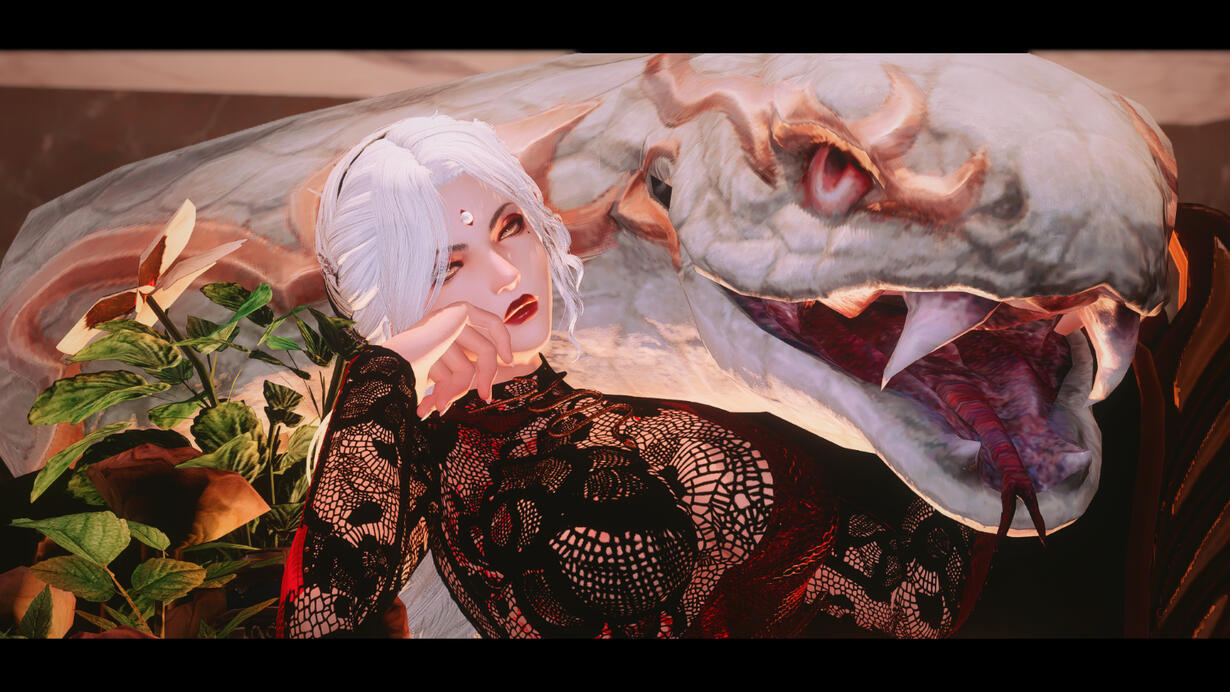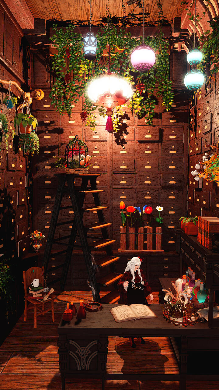 Tucked away in a back alley of the Rakuza District of Kugane, you find yourself stepping into what was told to be the best apothecary in the whole city. As you enter, your senses are immediately bombarded with the scents of strong herbs and florals, decadent incense, and a lingering smell of something sweet… vanilla, perhaps? The shop is dimly lit, save for the lanterns that adorn the corners here and there, but you can clearly see amidst the wood and tatami a plethora of flowers and other plants growing in planters all across. From brightlilies to byregotias, all matter of florals can be found, it is almost as if this apothecary was also a florist.“My… what lovely aether you have,” a bell-like voice rings melodically and brings you back to the present and reality. Behind the counter stands a petite woman, hair as bright as fresh snow. But what stands out are her golden eyes, seemingly glowing in the lowlight of the lanterns. They are piercing, holding you in her gaze. The bright red kimono she wears and her makeup, dark and dramatic, contrasts with her porcelain skin. The only thing you can think of is how doll-like she appears, possibly too perfect in a world like yours. You can only deduce that she is the woman locals speak of. Domina Veneni.Some say she is a Garlean defector, others claim she is the secret paramour of Lord Hien. A former Scion of the Seventh Dawn, yet some would question the validity of that rumor. After all, why would the Warrior of Light consort with a woman like her? Many say she is caring, but with a venomous bite, her alchemical skills outmatched by none, her healing techniques of high quality and standard. And yet, others would note that if there were a chance for you to seek revenge on another, Domina Veneni would be the woman to seek. After all, who better to get poisons from than the Lady of Venom herself?“What is it that you seek, darling? I don’t have all night,” she chides you with a mischievous sneer. Smoke flows from her dark red lips, a kiseru pipe hanging limply in her hand. Those golden eyes are still trained on you, her nails rapping against the wood over and over. “Tell me what it is you desire.”